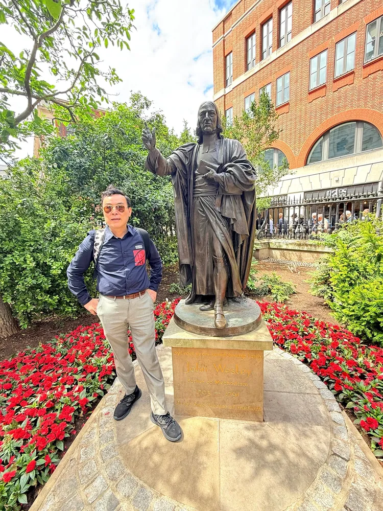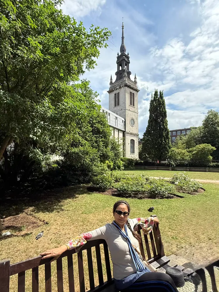 坐在教堂旁花园的椅子上,看着来来往往的人群。有刚下班的伦敦上班族,步履匆匆地走过;有手牵手的情侣,在教堂前拍照留念;还有像我一样的游客,舍不得离开这个美丽的地方。一位街头艺人在不远处演奏着萨克斯风,悠扬的音乐在夏日的微风中飘荡。