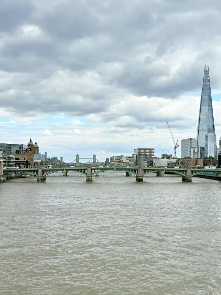 向南眺望,泰特现代美术馆的红砖烟囱直指云霄,这座由发电站改造而成的艺术殿堂,见证着伦敦从工业时代向后工业时代的华丽转身。再向远处看,伦敦眼在夏日的薄雾中若隐若现,如同一个巨大的时钟,默默记录着城市的时光流转。