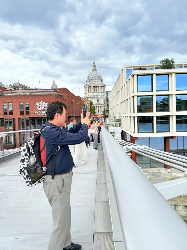 我在千禧桥上待了整整一个小时,见证了它在不同时刻的美丽。午后的强烈阳光让桥面有些炙热,但河面的微风带来了清凉。此时的圣保罗大教堂在阳光直射下显得格外雄伟,每一个建筑细节都清晰可见。