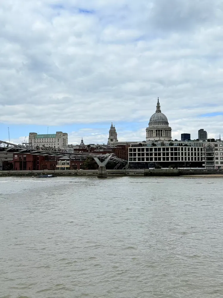 从千禧桥头上回望圣保罗大教堂,它就像一位睿智的长者,见证着伦敦的沧桑变迁,守护着这座城市的精神家园。泰晤士河水静静流淌,倒映着教堂的幻影,波光粼粼,美不胜收。