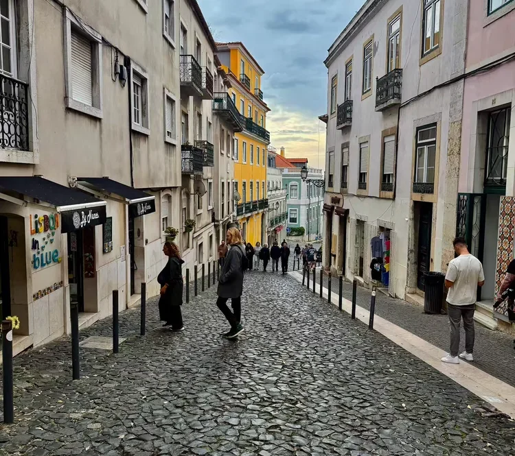 暮秋的阳光是温柔的,带着一种即将告别的怅然。它从大西洋的方向斜射过来,把窄巷两侧斑驳的墙面染成蜜糖色。墙上的瓷砖画(azulejos)在光影里闪烁着幽蓝与洁白,讲述着几个世纪前的故事。有些瓷砖已经碎裂,露出背后的石砖,却更添一份沧桑的美感。