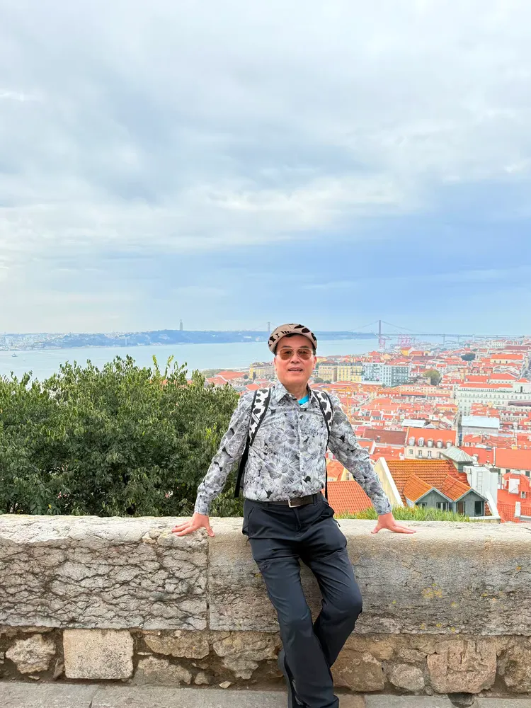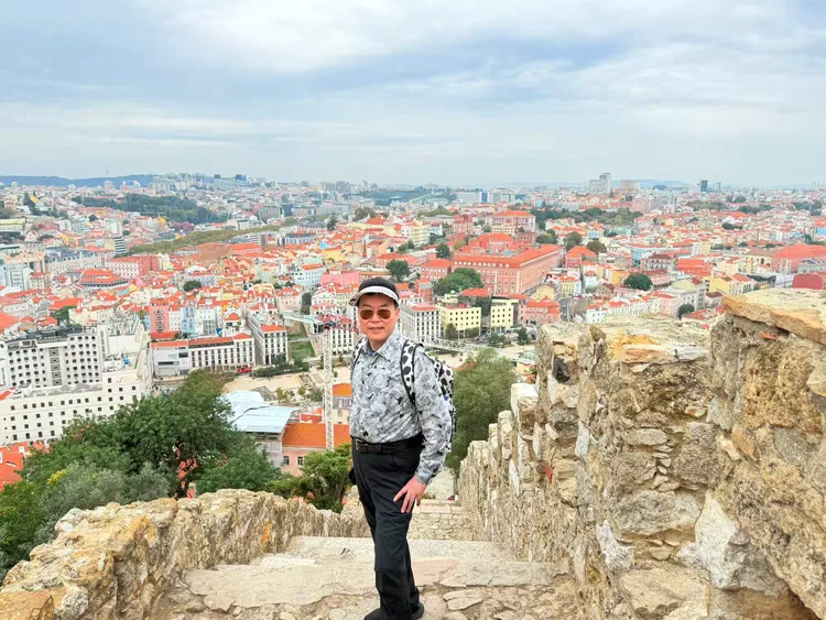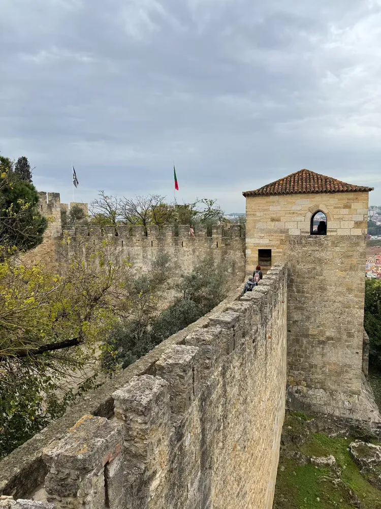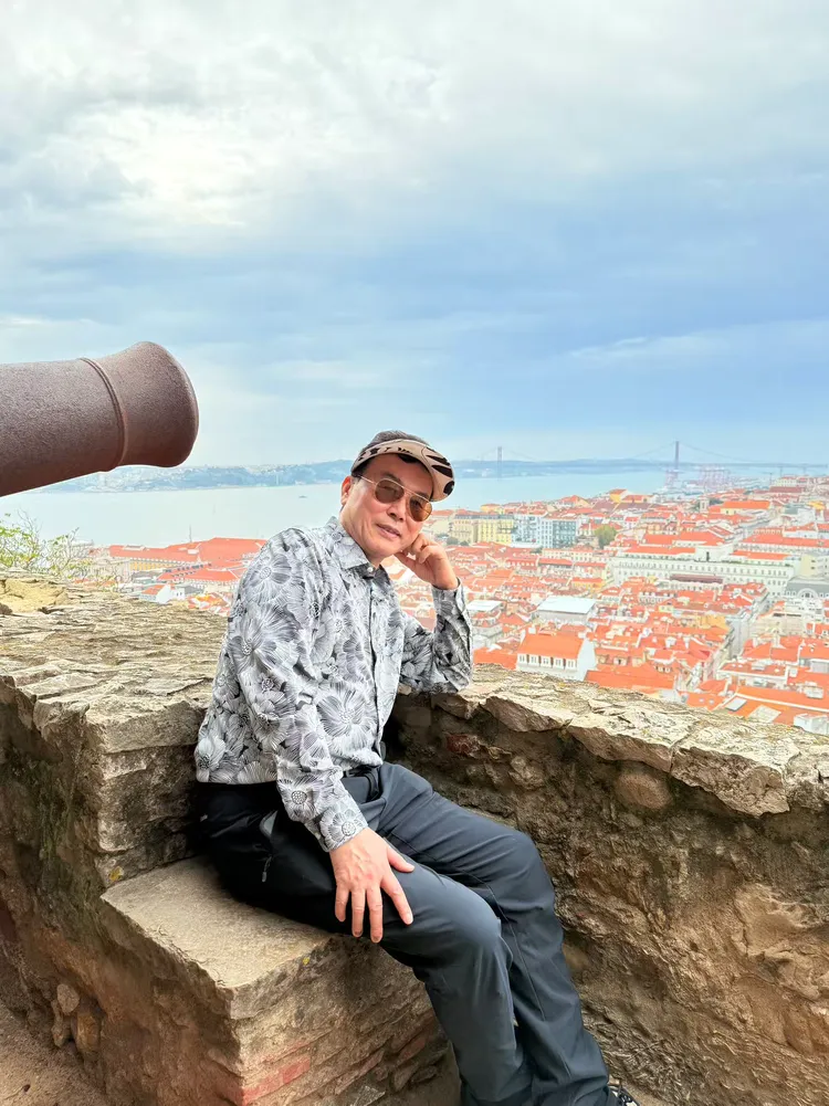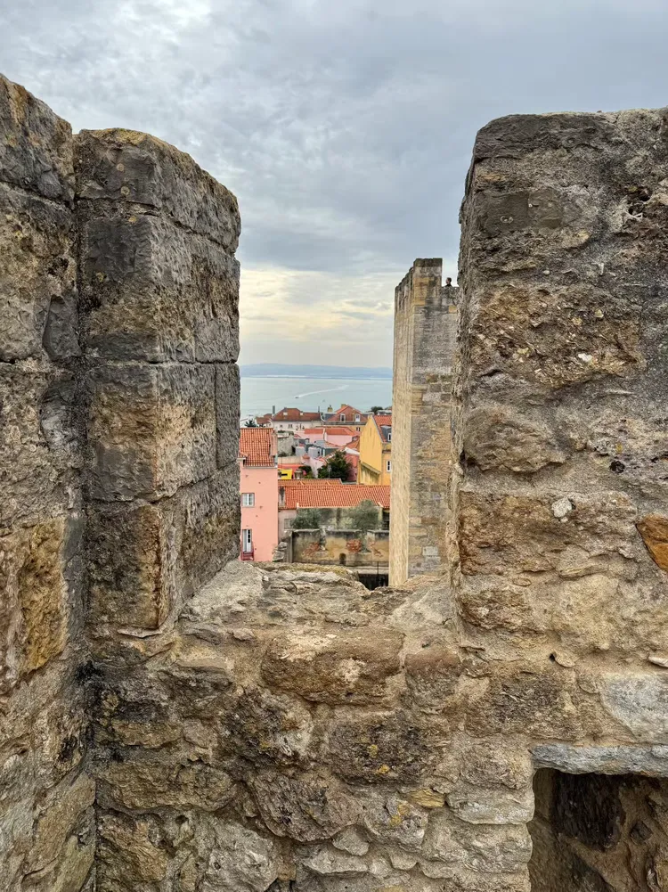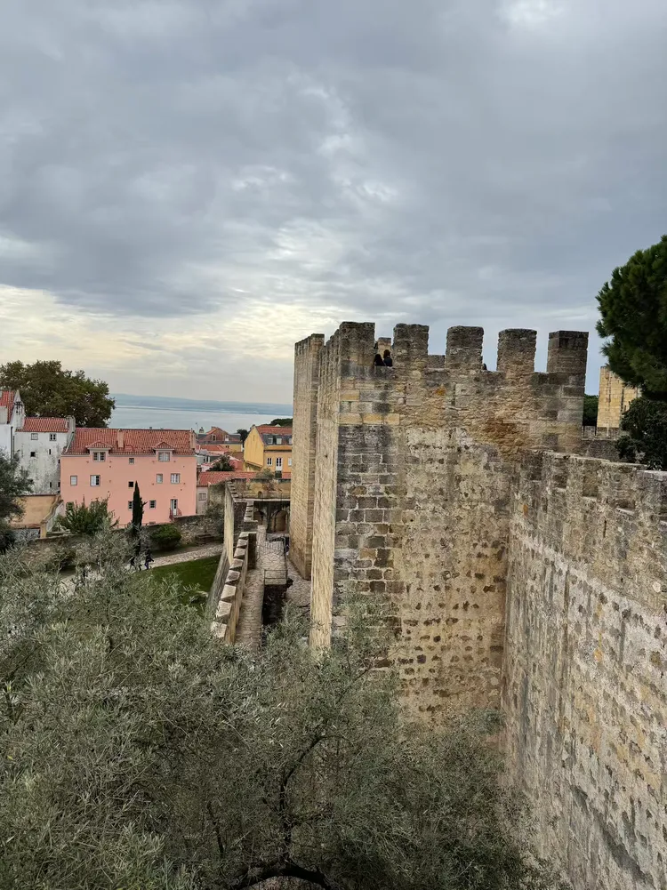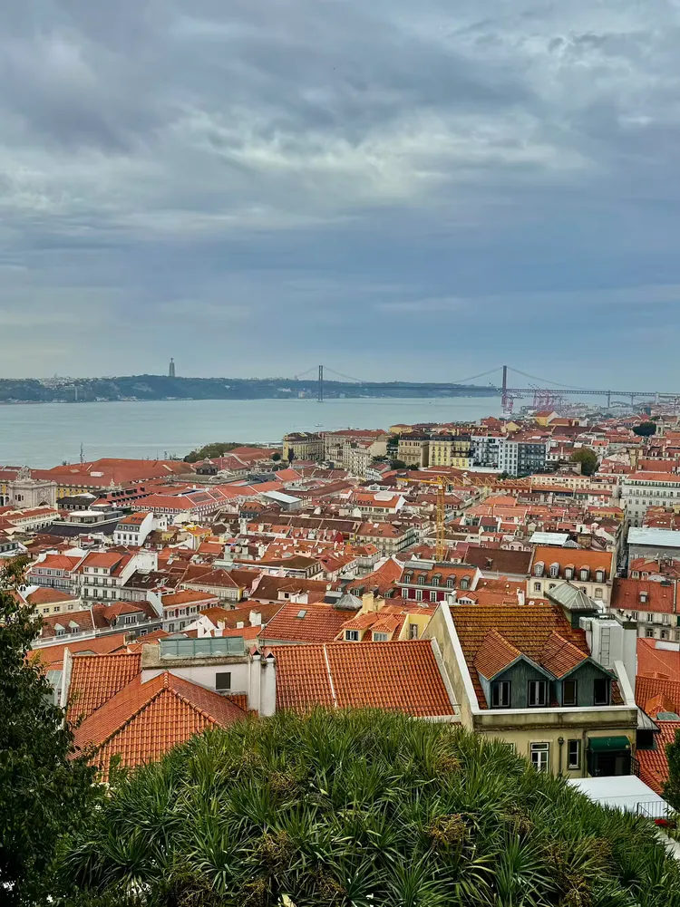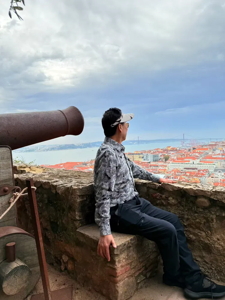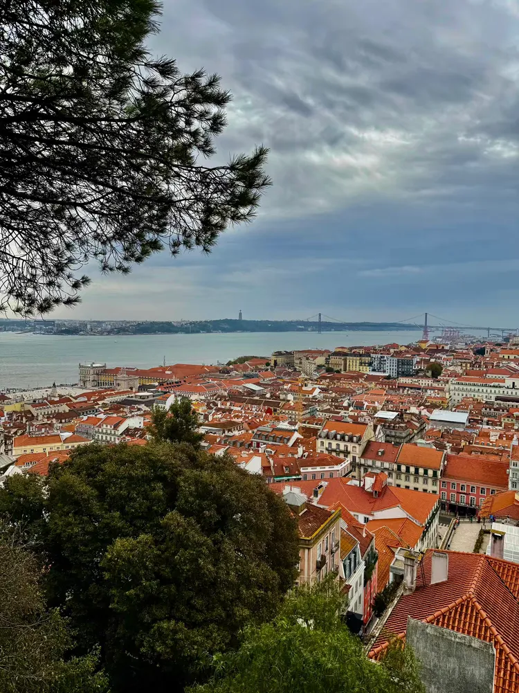 站在城墙上,整个里斯本尽收眼底,红瓦白墙的房屋层层叠叠,从山坡蔓延到河边。远处的特茹河宽阔而宁静,4月25日大桥横跨两岸,像是一条连接过去与未来的纽带。