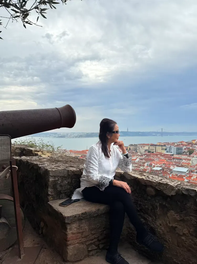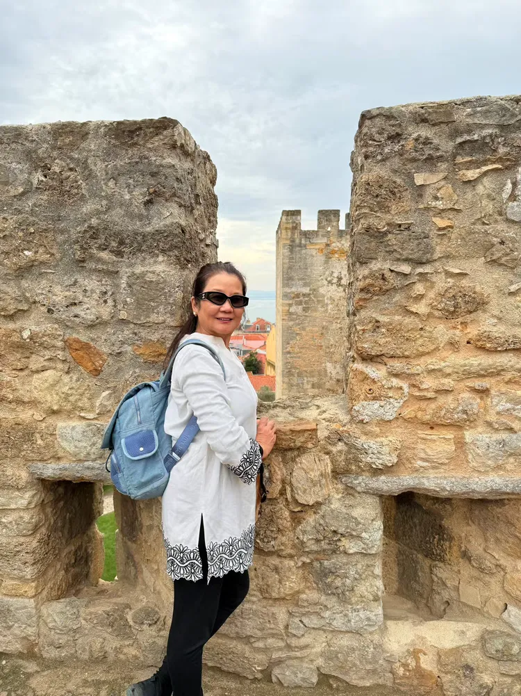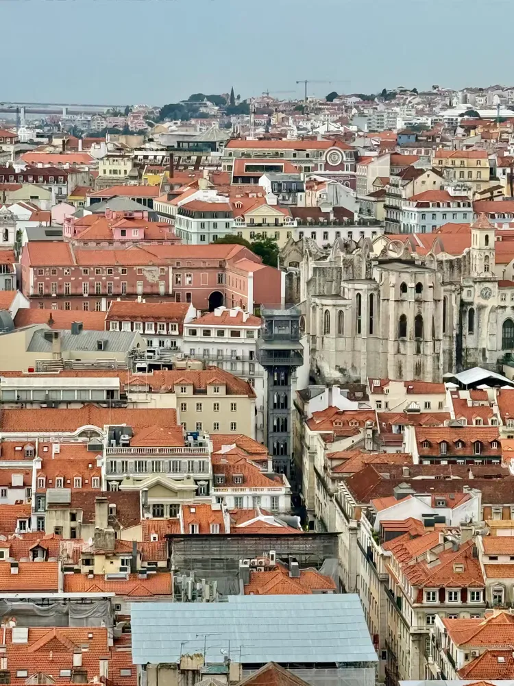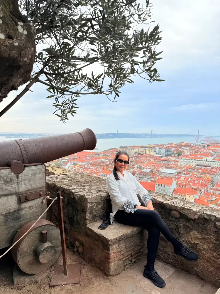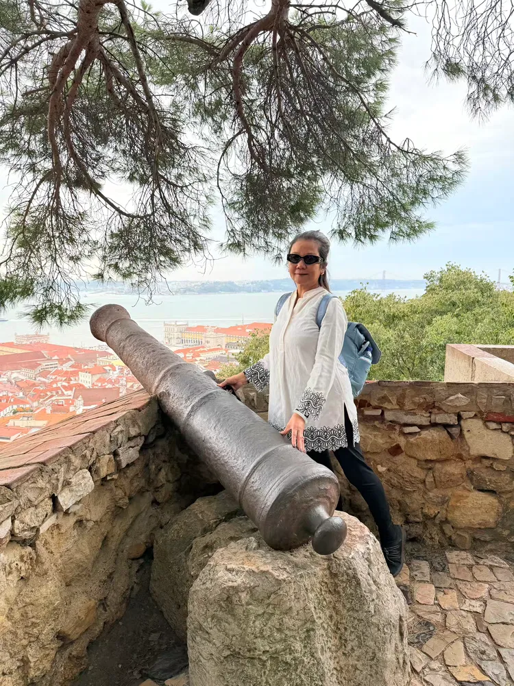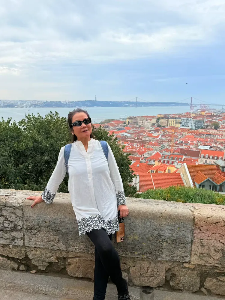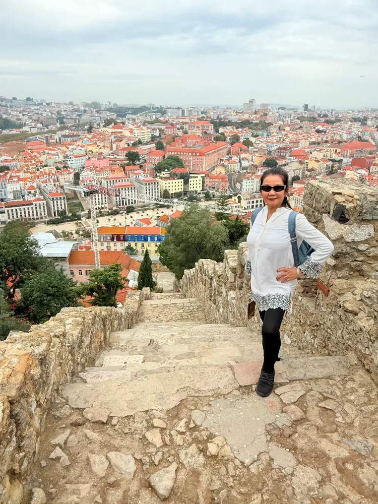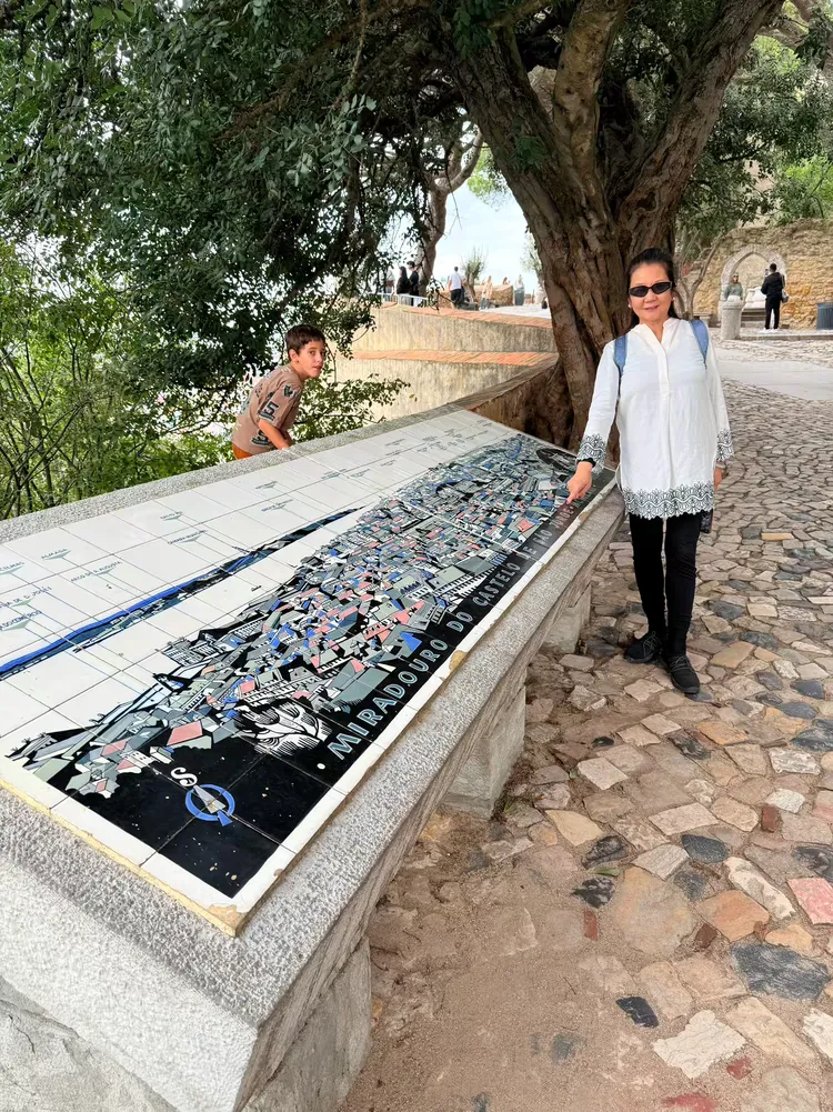 站在城墙上,整个里斯本尽收眼底,红瓦白墙的房屋层层叠叠,从山坡蔓延到河边。远处的特茹河宽阔而宁静,4月25日大桥横跨两岸,像是一条连接过去与未来的纽带。