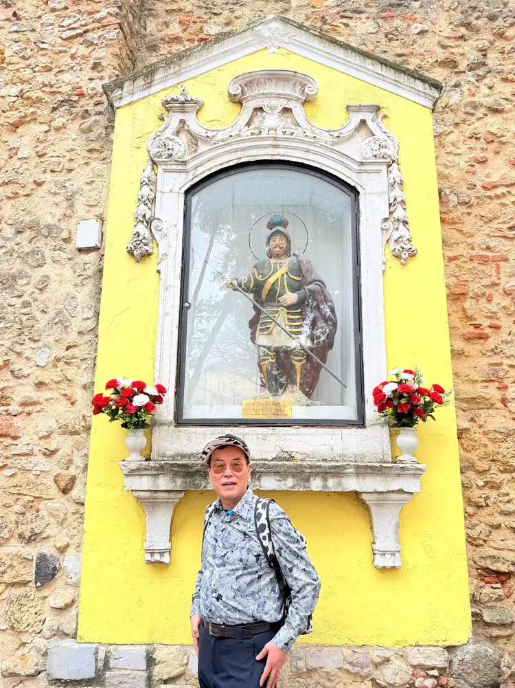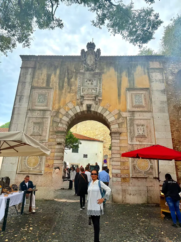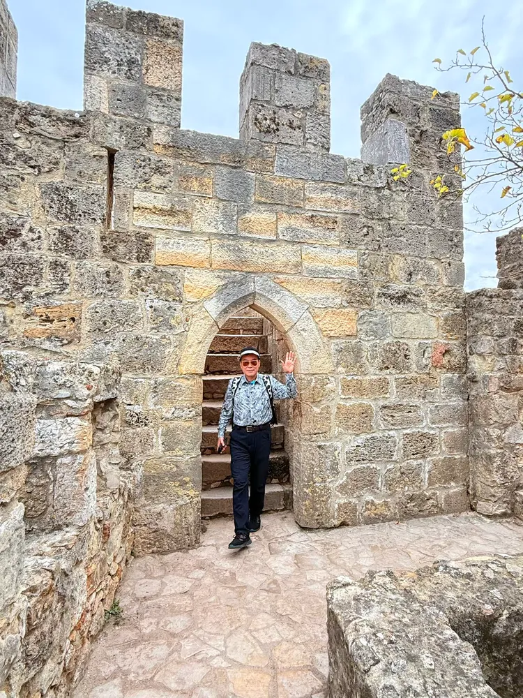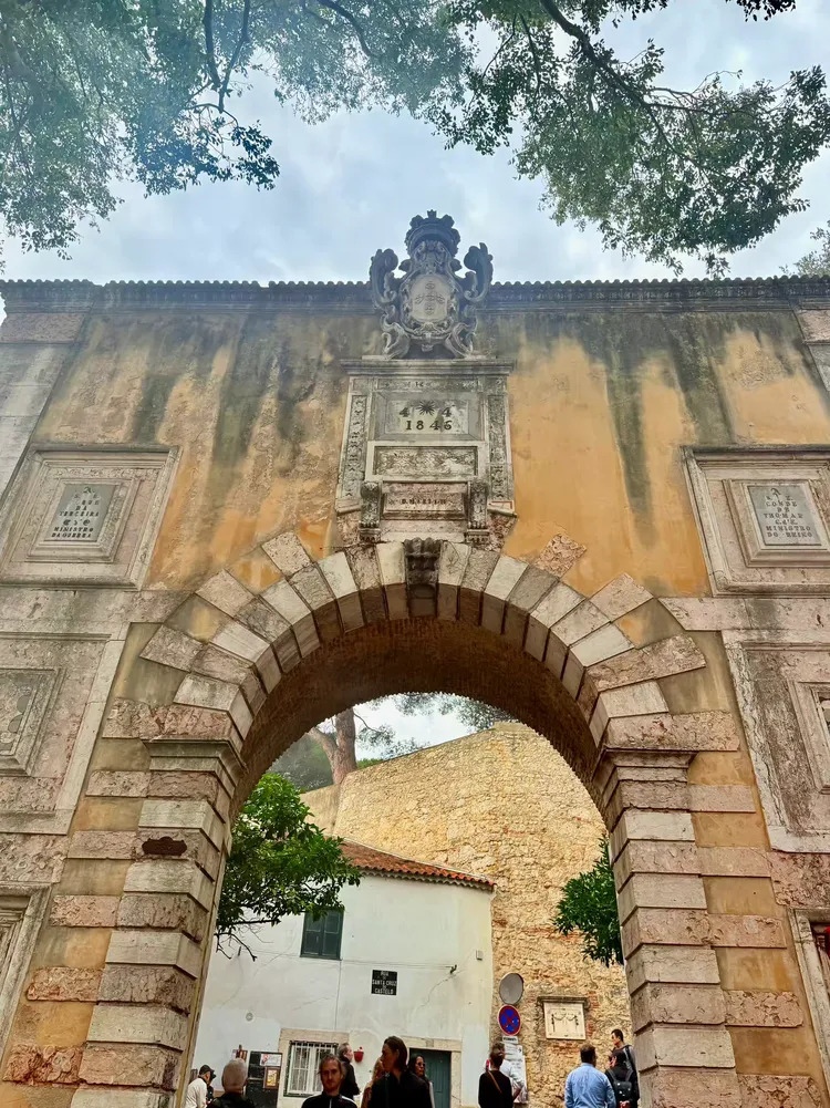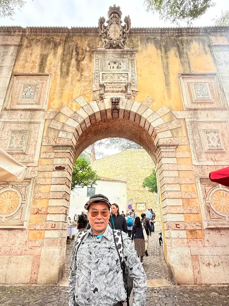 2025年11月4日中午,少云到多云。我们乘网约车,从热罗尼姆修道院来到圣乔治城堡山脚下。无论你相信与否,20多分钟的车程仅需要6个欧元,比坐地铁还要便宜!我们沿着阿尔法玛区蜿蜒的石板路向上攀登,两旁是斑驳的老房子,墙面贴着蓝白相间的瓷砖。暮秋的风吹过,枯黄的落叶在脚下沙沙作响。