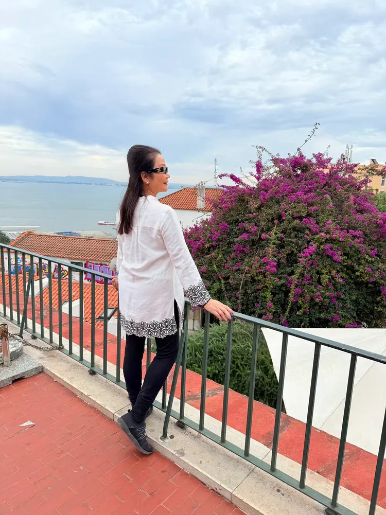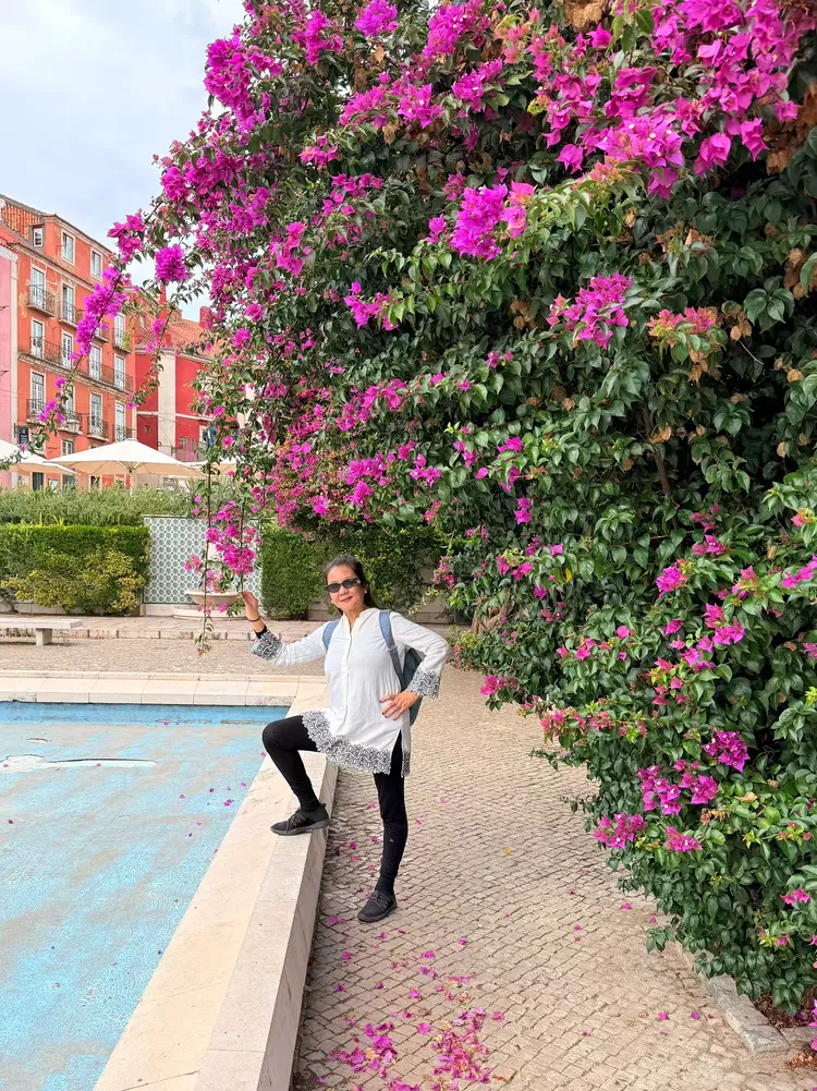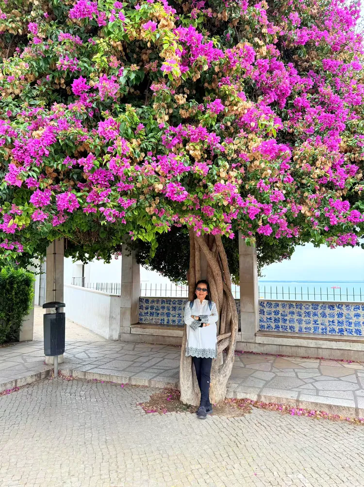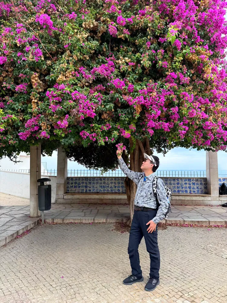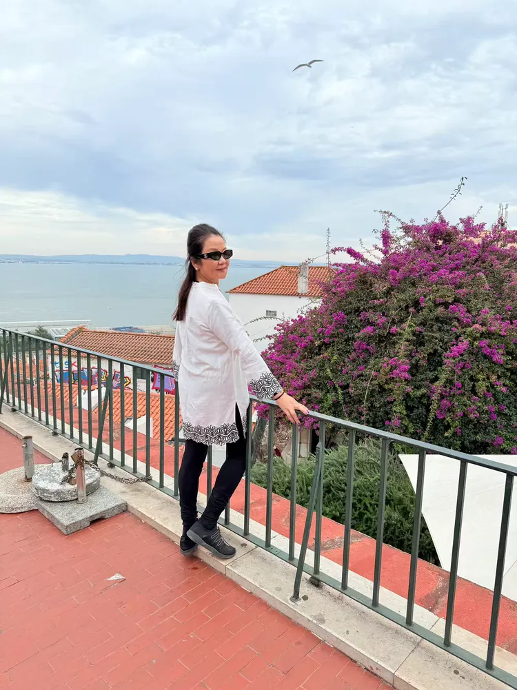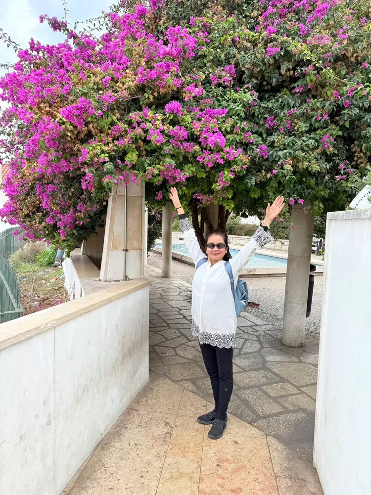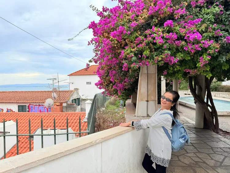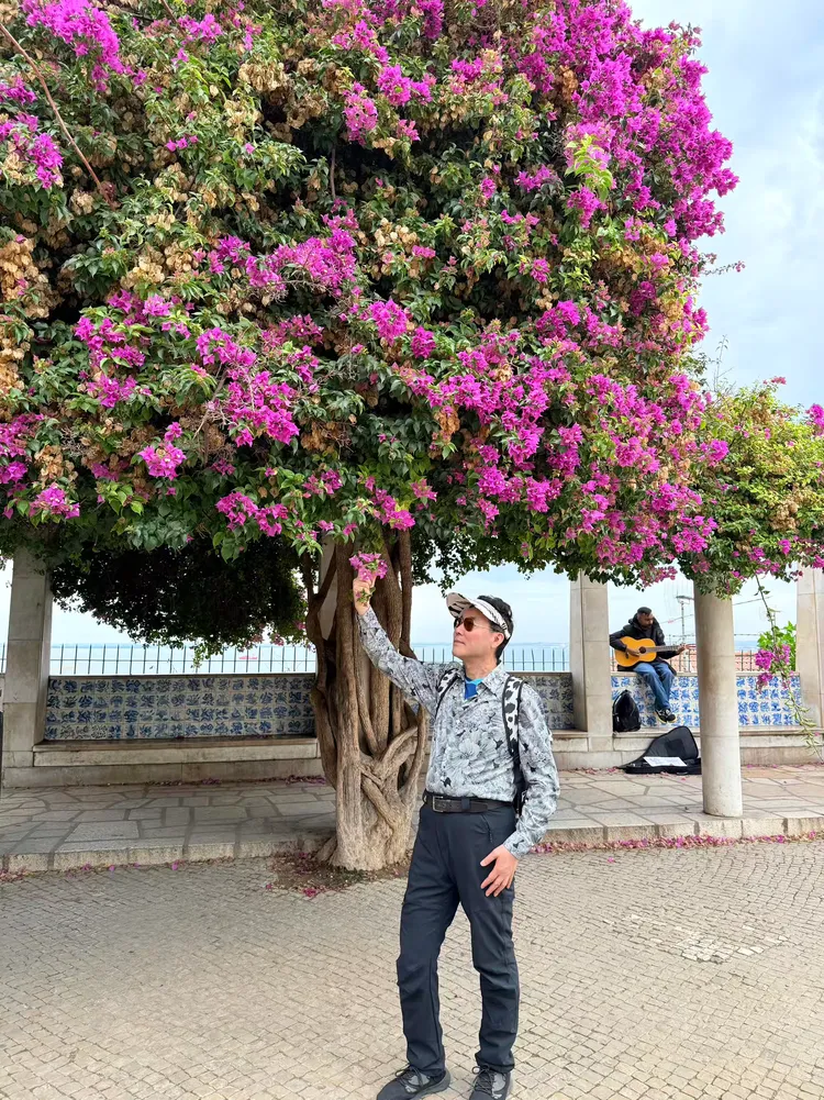 我们站在观景台的长椅上,一边欣赏着街心公园里盛开的三角梅,一边看着这座在现代世界里坚持慢下来的老城区。暮秋的里斯本,暮秋的阿尔法玛,像一首写在石头上的诗,需要用脚步去丈量,用心去感受。
