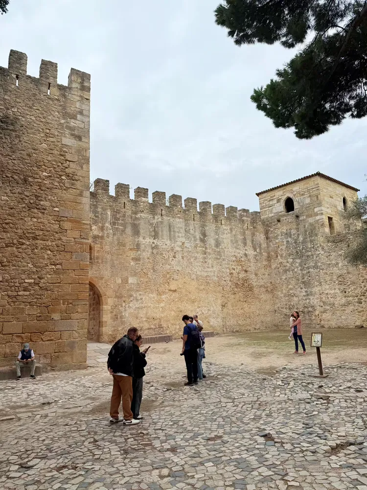 圣乔治城堡就这样出现在山顶,古老的城墙在阳光中泛着温暖的赭石色。这座摩尔人建造的堡垒,已经守护这座城市近千年。