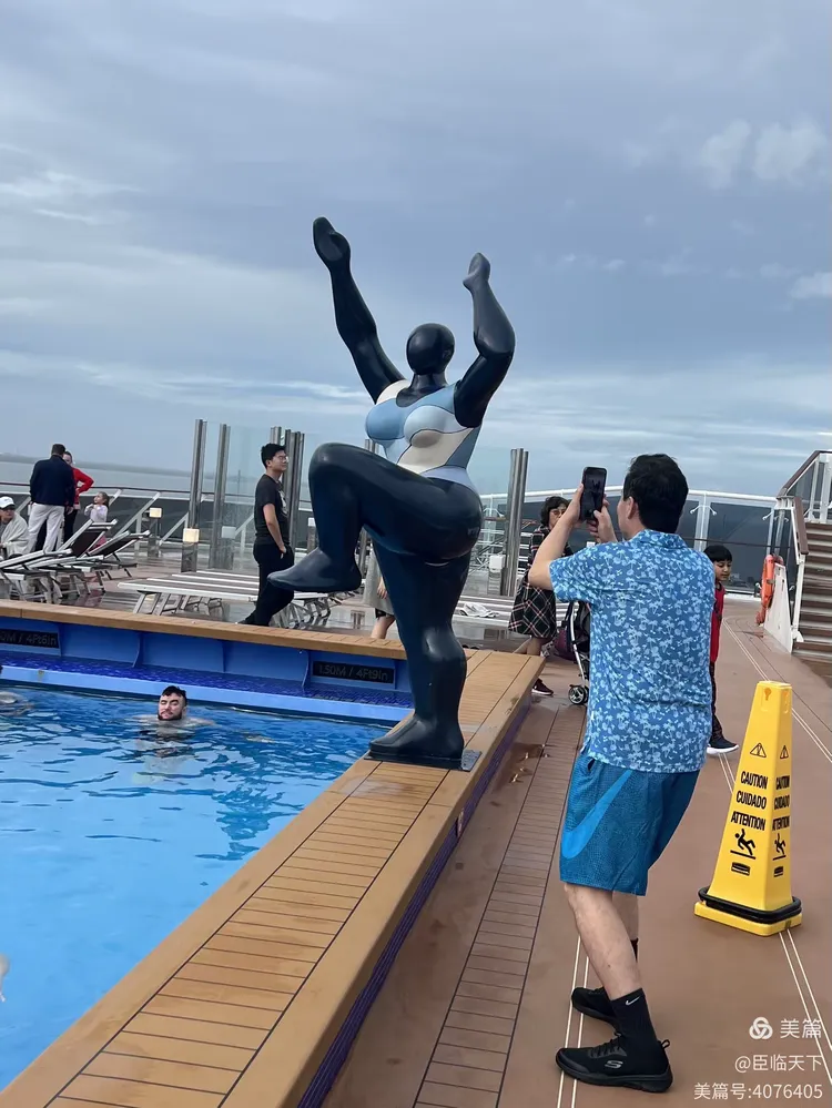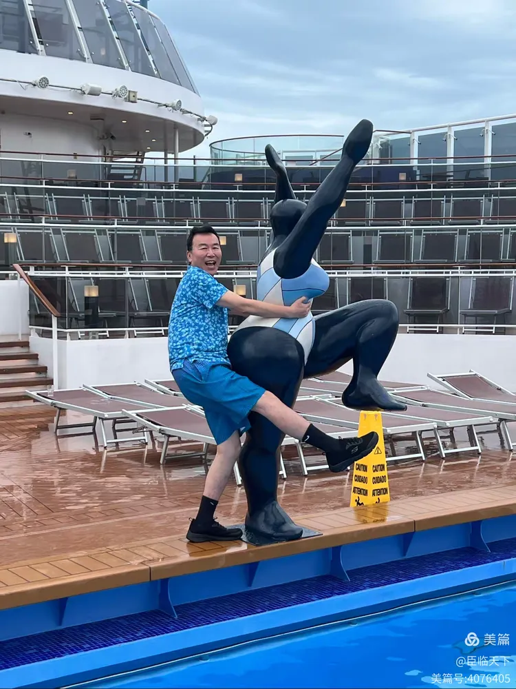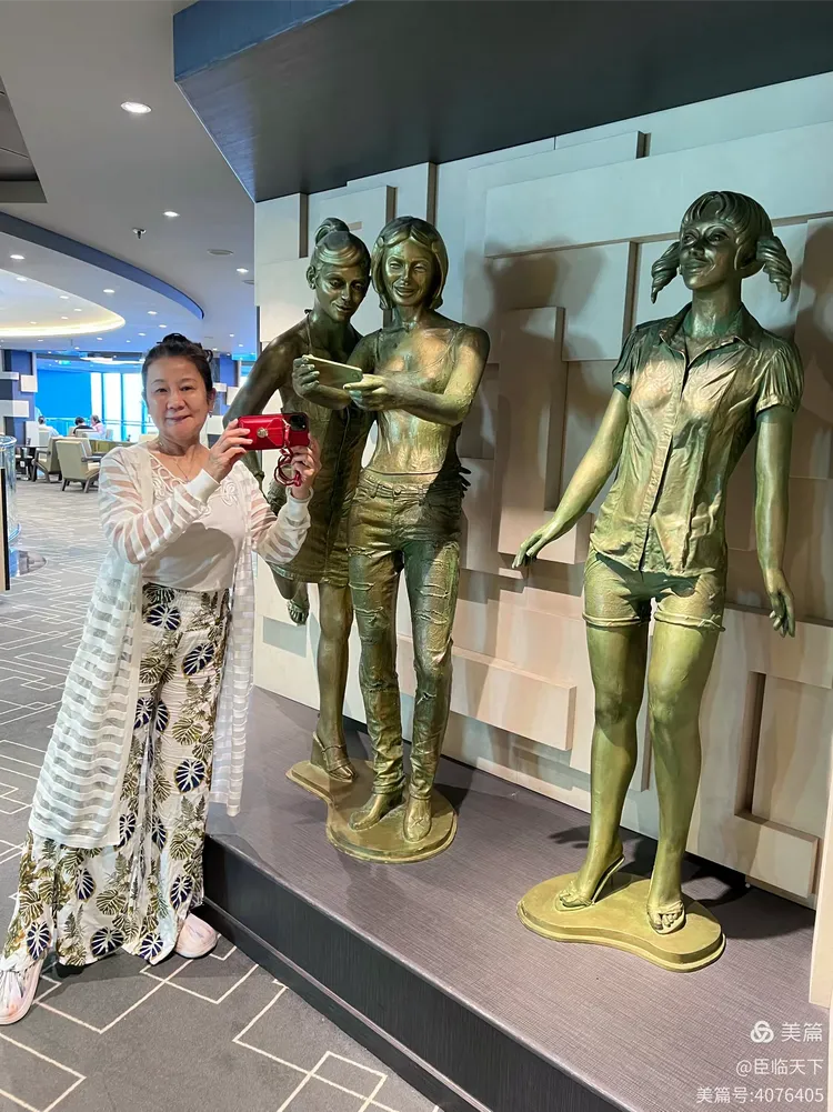 在游泳池旁矗立一尊胖妞雕塑,她的肤色黢黑造型独特吸引了不少游客与之合影留念,我们当然也不例外。