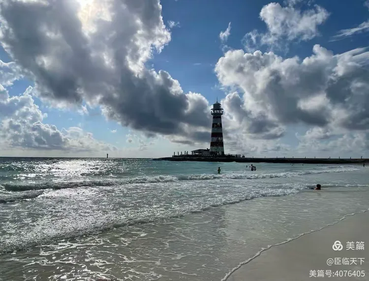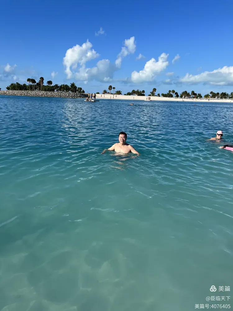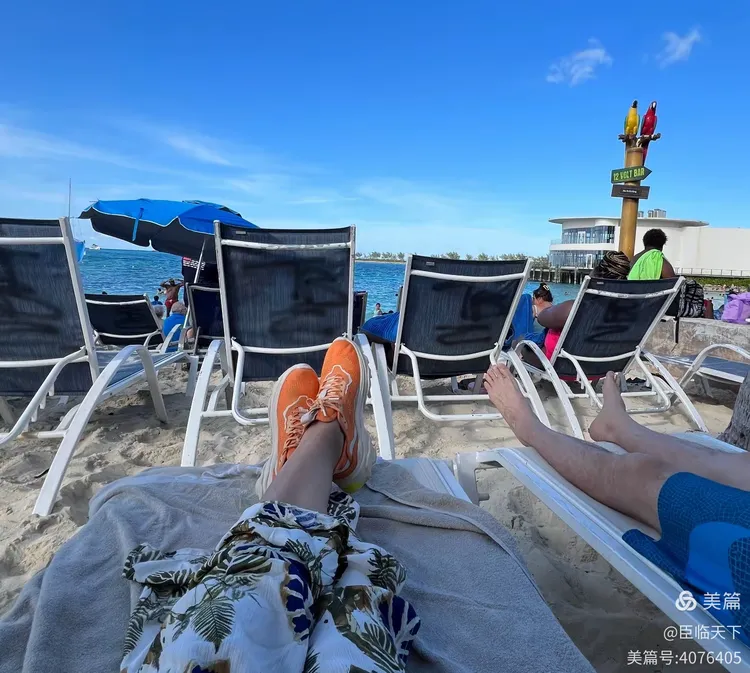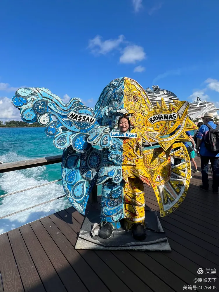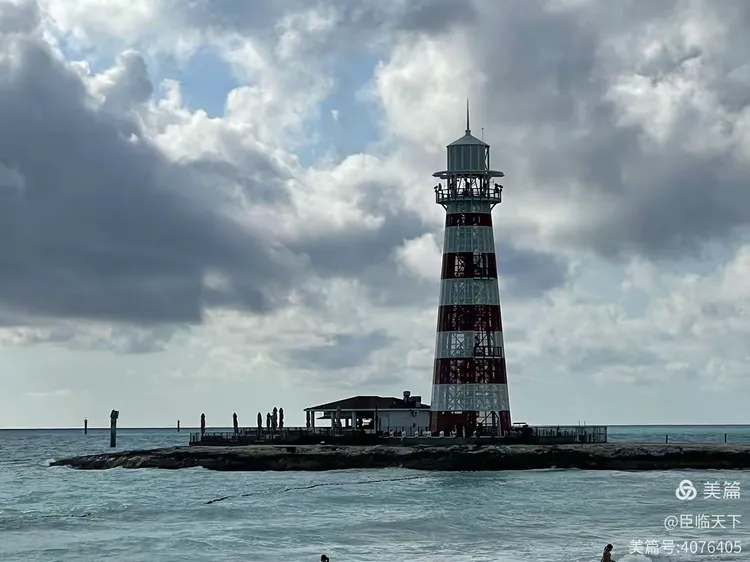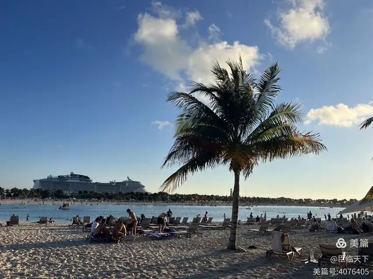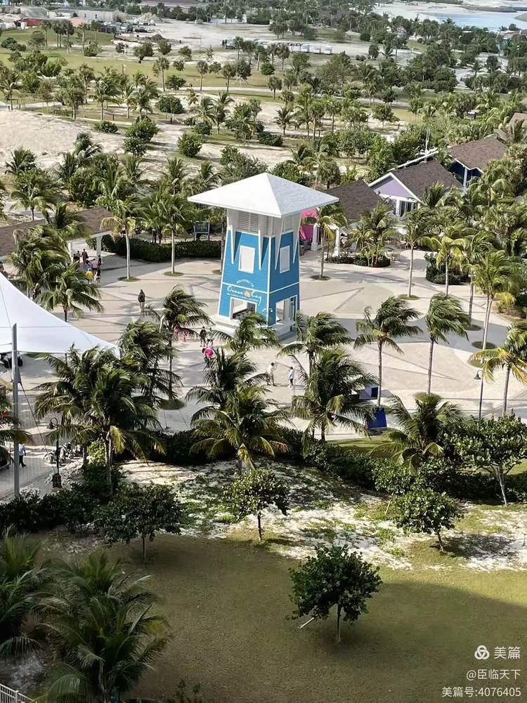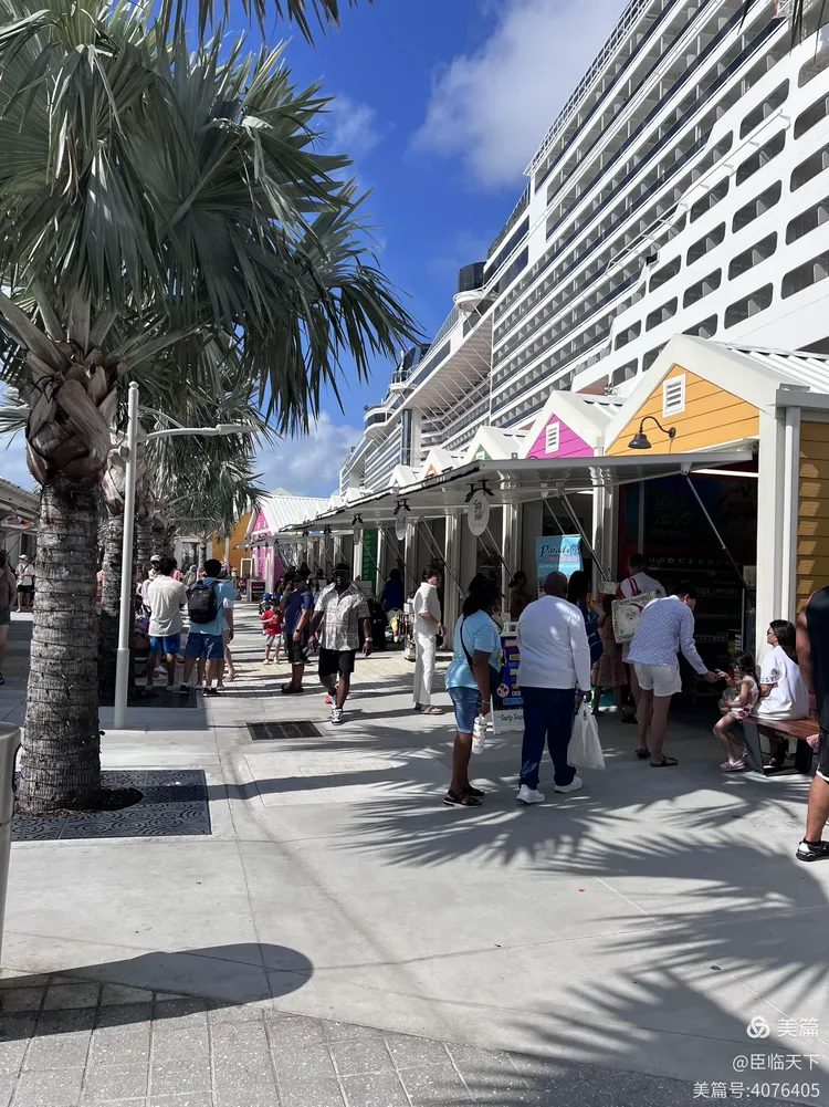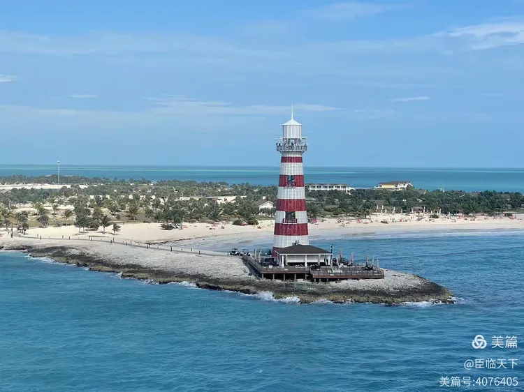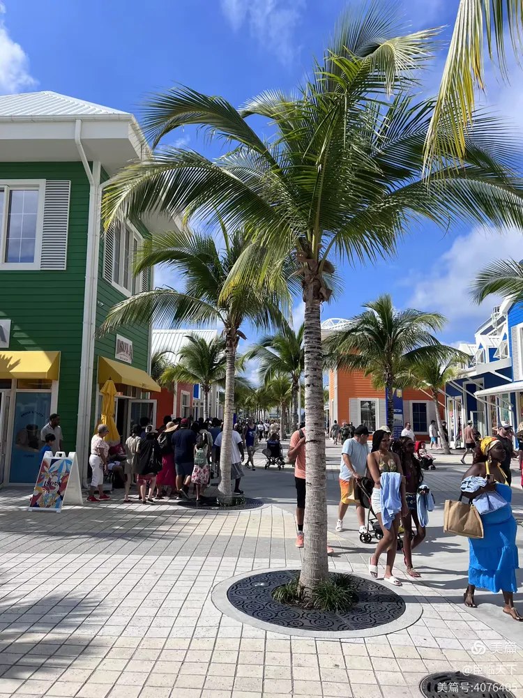 在这里有几片优美无比的海滩、平静无比的海湖、一排排色彩斑澜的巴哈马民房、海滨自助餐厅、各种海上游乐设施,这次邮轮游的行程在这里是一天一夜,游客们可以尽情享受这里的阳光、沙滩、海水。