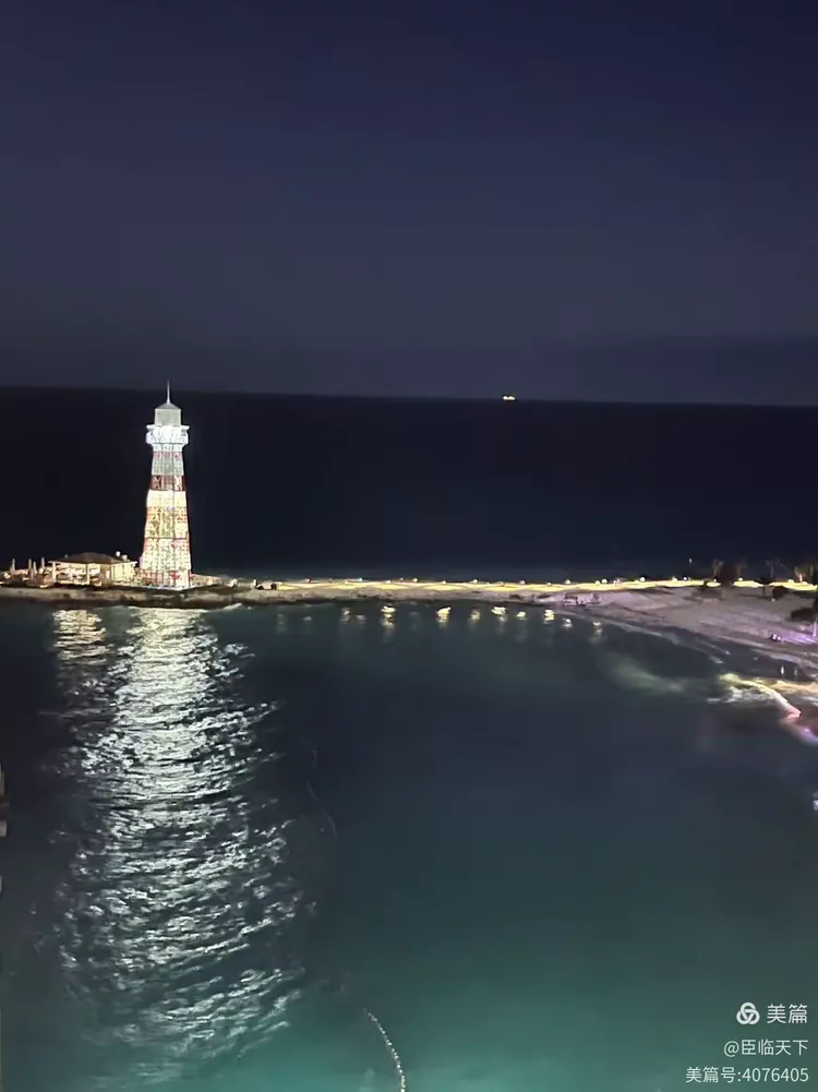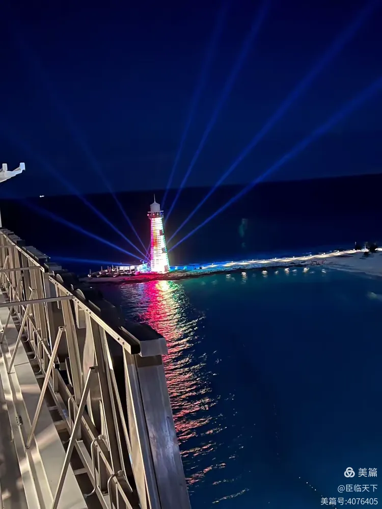 海洋礁上特有的地标建筑灯塔在暮云夕晖的衬托之下,更加显得优雅迷人。夜幕降临后,这座灯塔将投射出五彩缤纷的激光秀,是这次海上航行的一大看点。