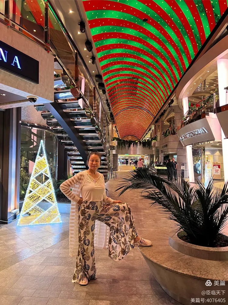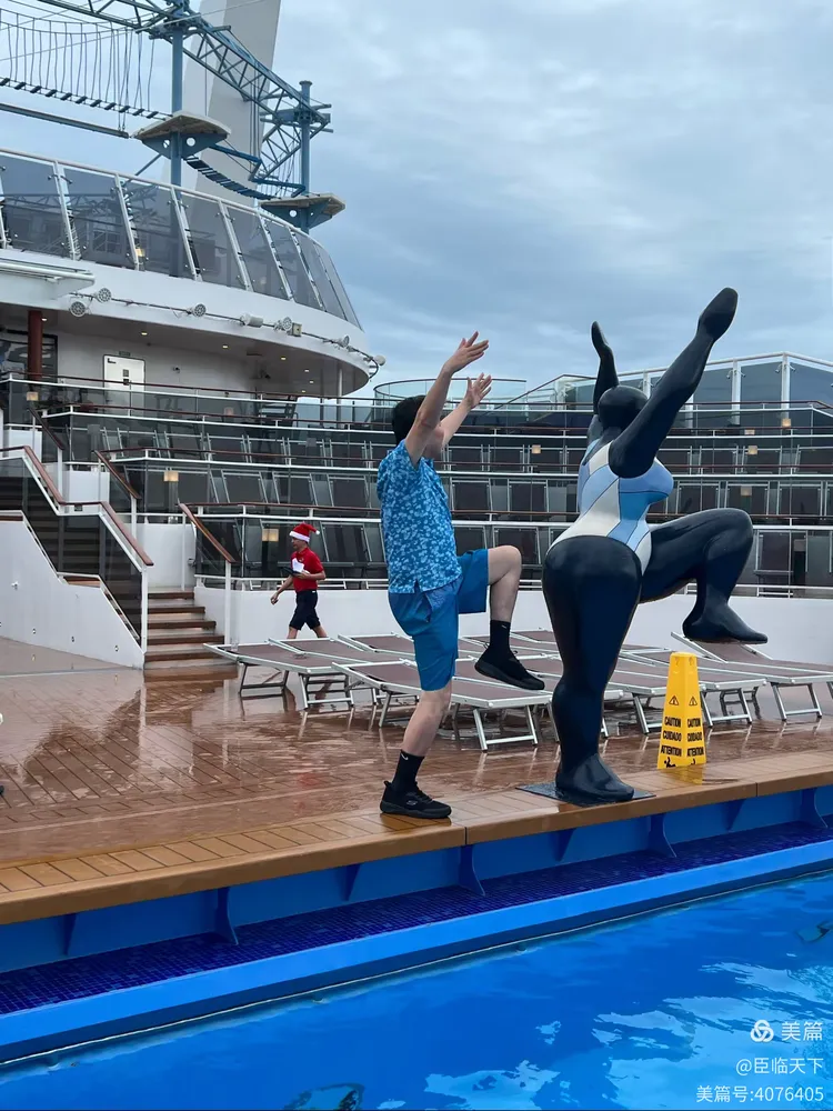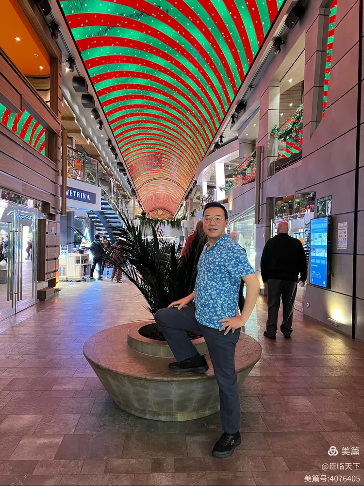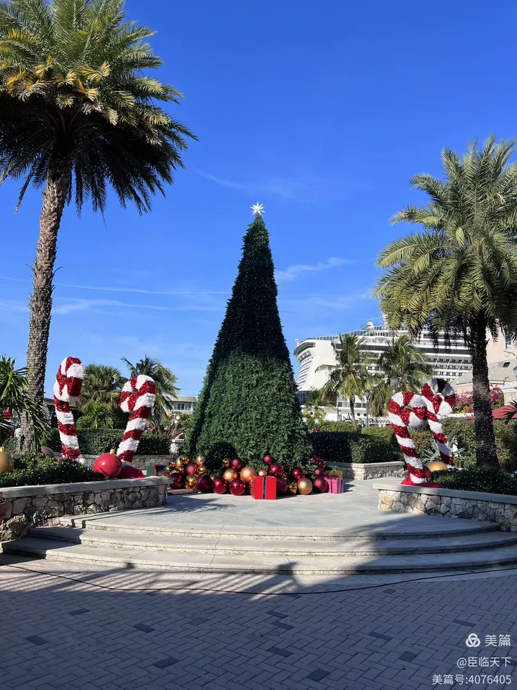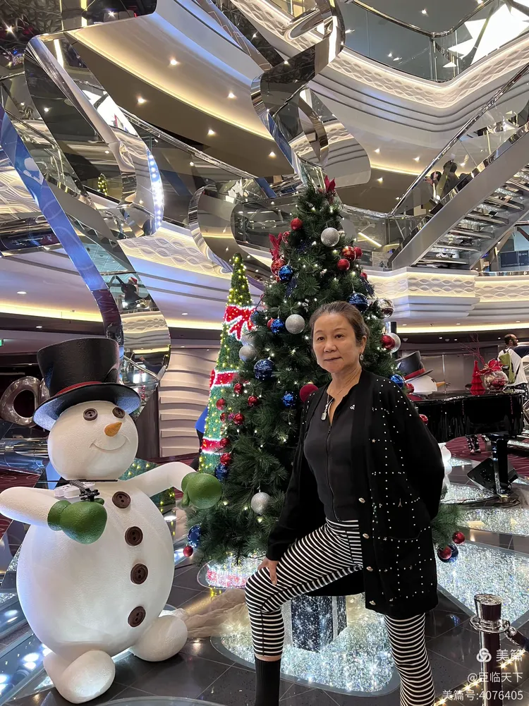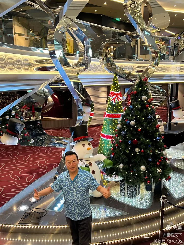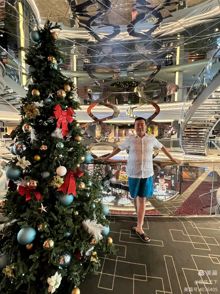 船上到处都是圣诞树,小雪人,拉雪橇的麋鹿………,整个游轮充满了圣诞节的气氛。唯一不同的是,这里的天气温暖如春,丝毫没有冬日的寒冷。