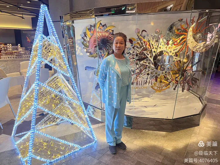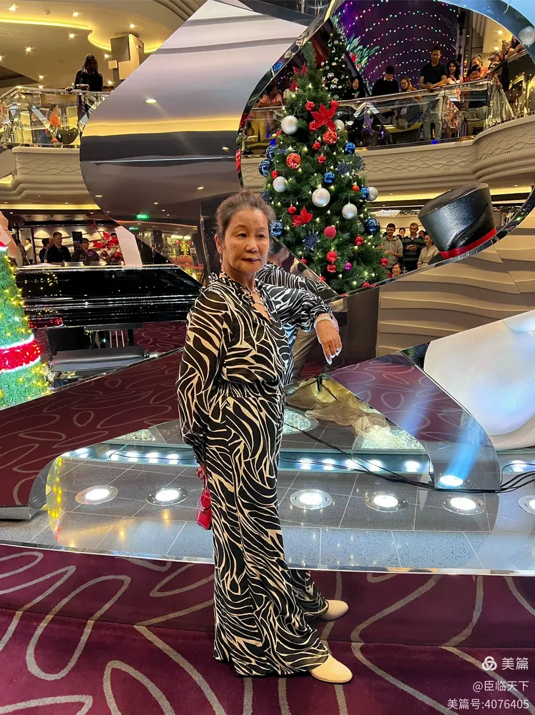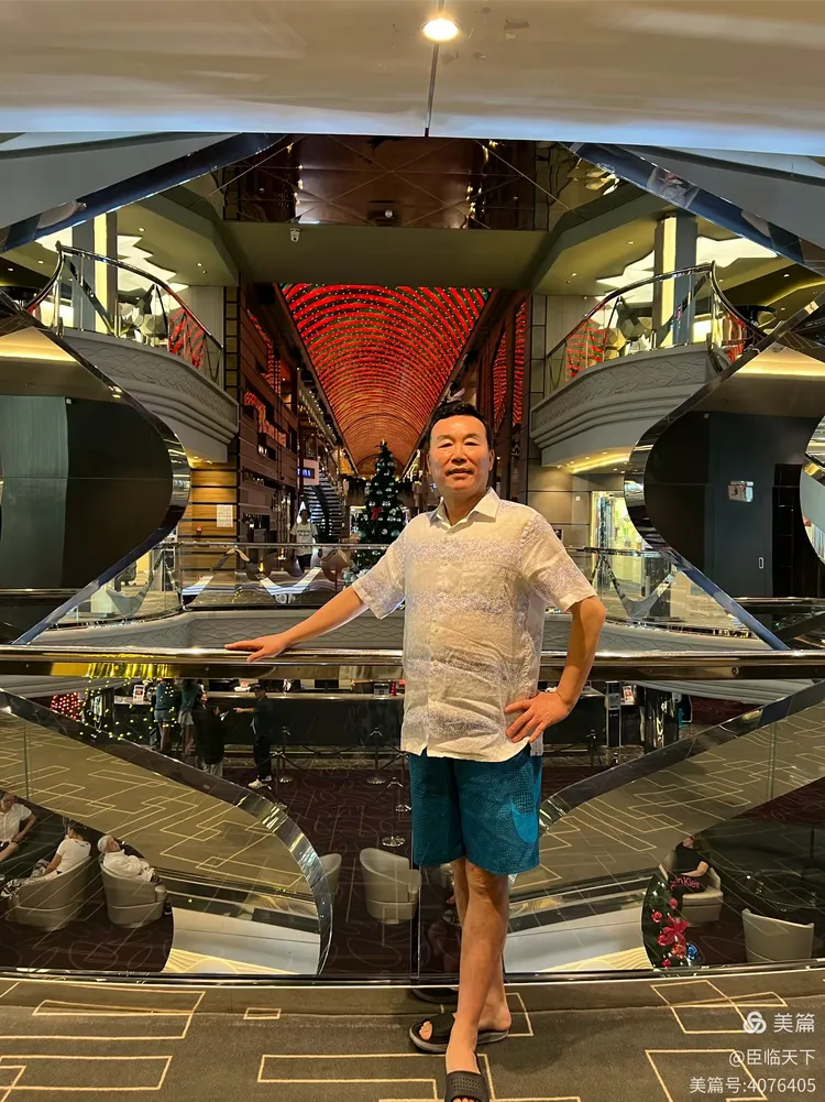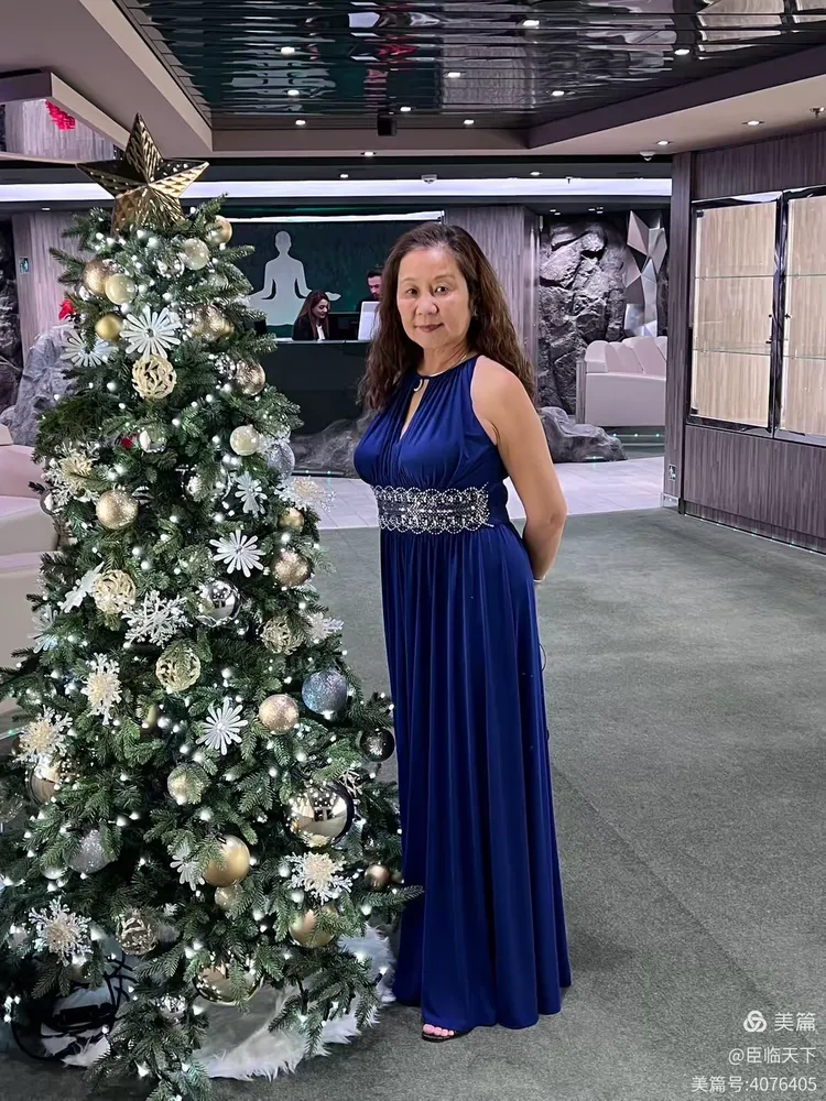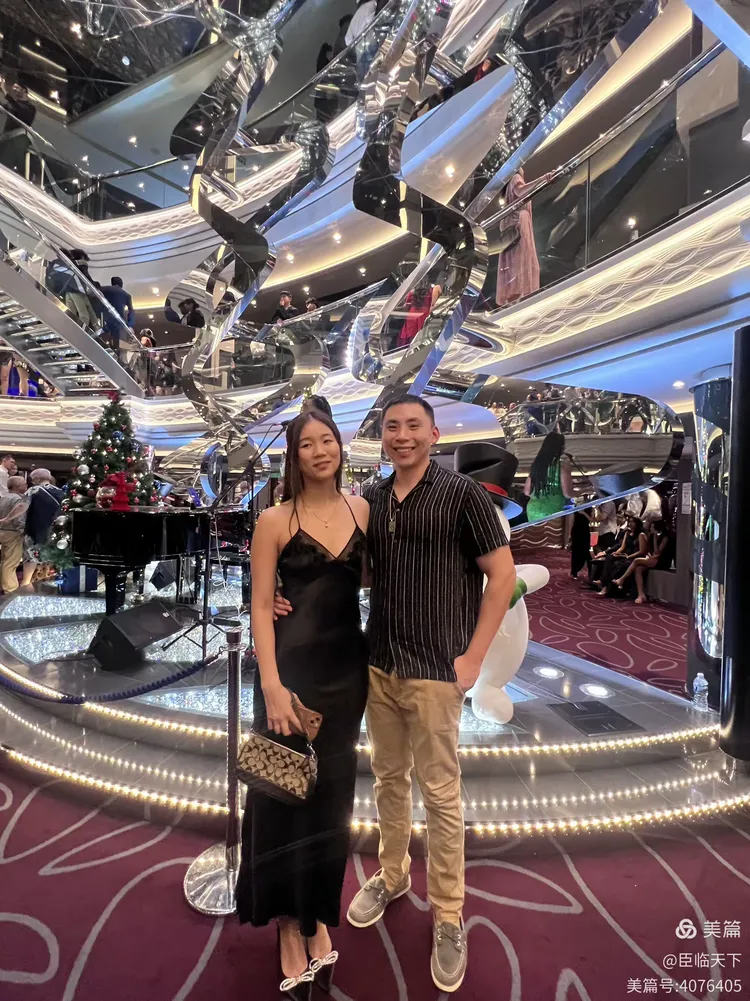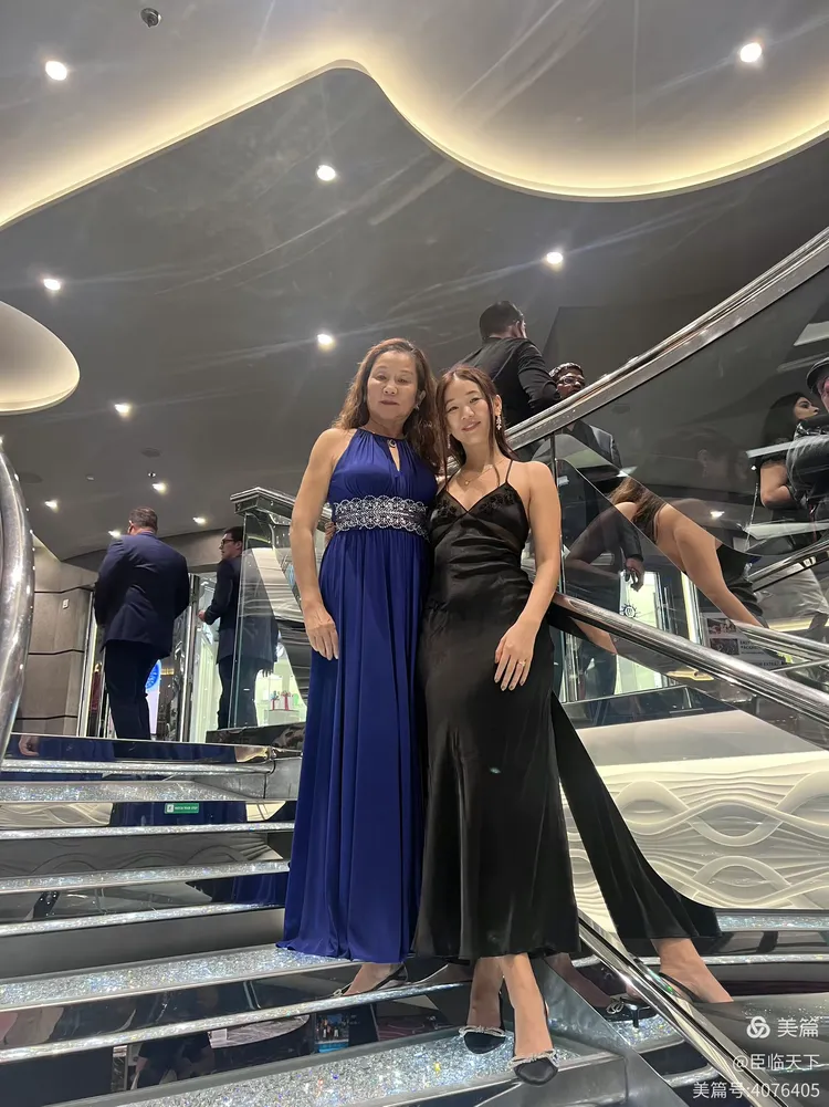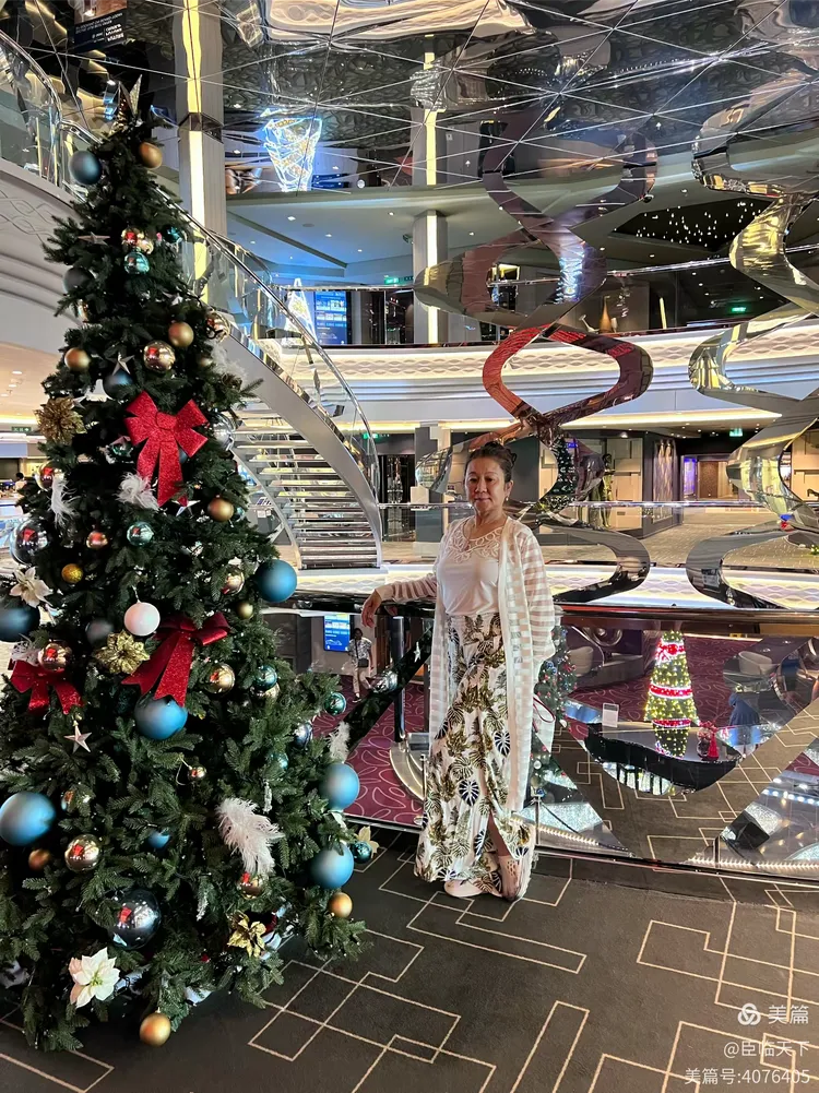 圣诞平安夜大家纷纷穿上正式的礼服,在晚餐后纷纷在游轮的公共区域拍照留念。