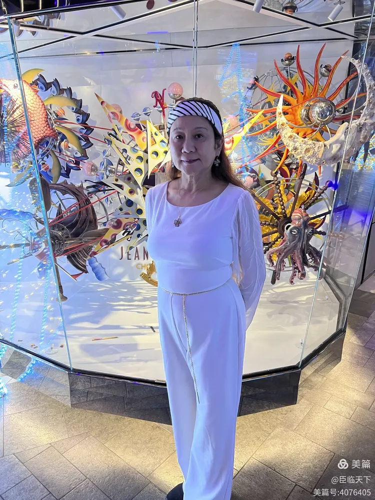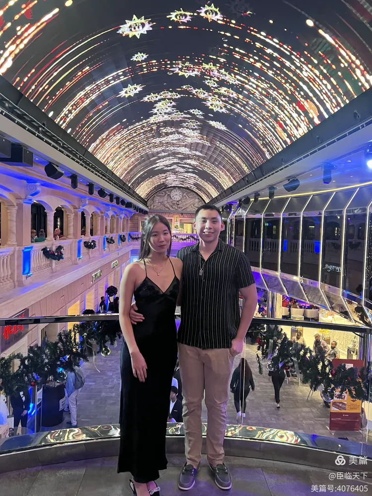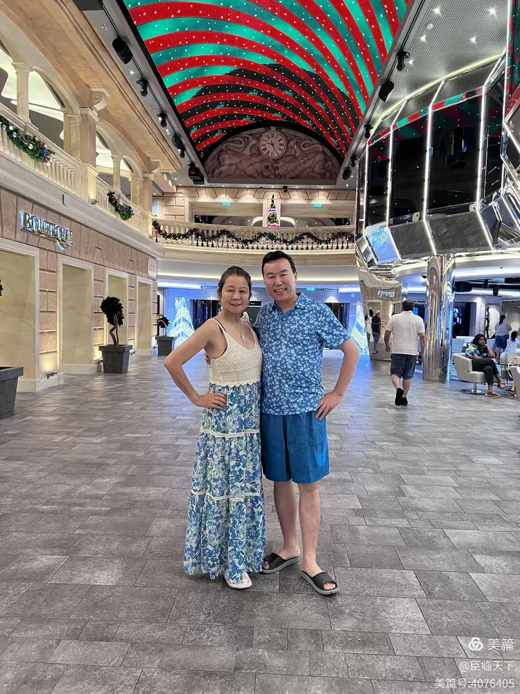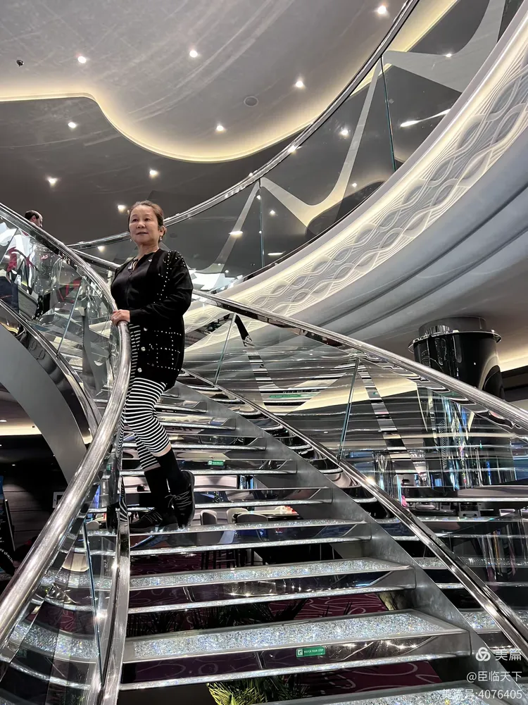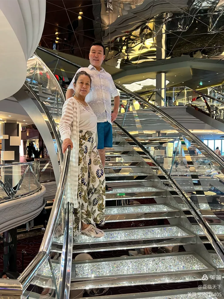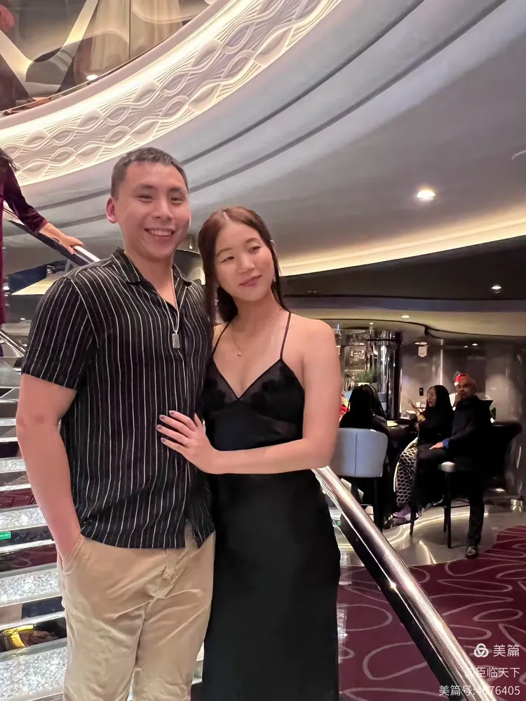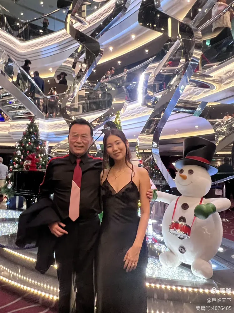 圣诞平安夜大家纷纷穿上正式的礼服,在晚餐后纷纷在游轮的公共区域拍照留念。