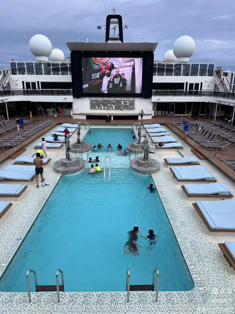 船上有一个可以容纳千人的大剧场,每天晚演出具有纽约百老汇和拉斯维加斯式的歌舞剧和单口秀巨星的演出,每场演出绝不重样。下面就播放几个表演片段的视频,供大家欣赏。