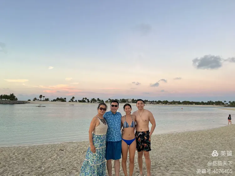 时间过得真快,不知不觉中已时至黄昏,夕阳将天际尽头的云层晕染得五彩缤纷,刚才还湛蓝清澈的海水正在悄悄地变浅,变成淡淡的粉红色,好神奇哦!